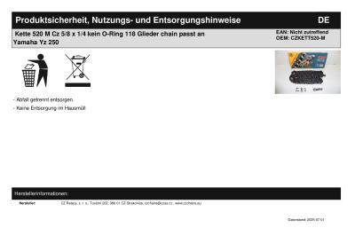 Titel: | Kette 520 M Cz 5/8 x 1/4 kein O-Ring 118 Glieder chain passt an Yamaha Yz 250 |
