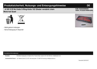 Titel: | Jt 525 X1R Nn Kette X-Ring-Kette 102 Glieder verstärkt chain Motorrad Quad |