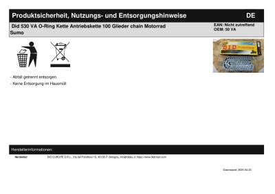| Titel: | Did 530 VA O-Ring Kette Antriebskette 100 Glieder chain Motorrad Sumo |
