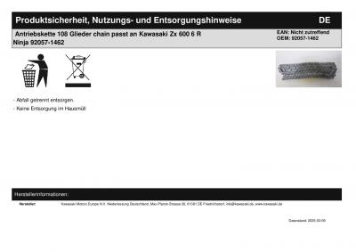Antriebskette 108 Glieder chain passt an Kawasaki Zx 600 6 R Ninja 92057-1462