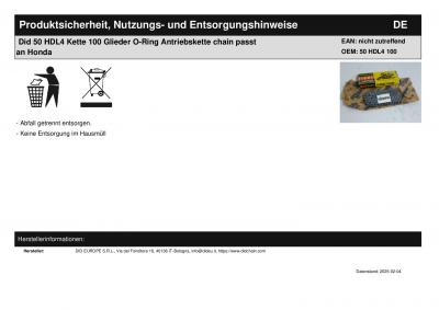 Titel: | Did 50 HDL4 Kette 100 Glieder O-Ring Antriebskette chain passt an Honda |