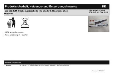 Titel: | Did 525 ZVM-X Kette Antriebskette 110 Glieder X-Ring-Kette chain Motorrad |