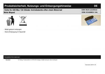 Titel: | Kette Dc 428 Msx 134 Glieder Antriebskette offen chain Motorrad Mofa Moped |