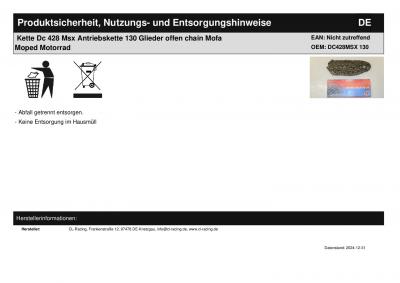 Titel: | Kette Dc 428 Msx Antriebskette 130 Glieder offen chain Mofa Moped Motorrad |