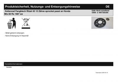 Titel: | Kettenrad Fangblech Ritzel 45 15 Zähne sprocket passt an Honda Mtx 80 Rs 1987 sw |