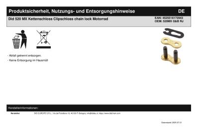 Titel: | Did 520 MX Kettenschloss Clipschloss chain lock Motorrad |