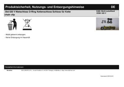 Titel: | Did 520 V Nietschloss O-Ring Kettenschloss Schloss für Kette chain clip |