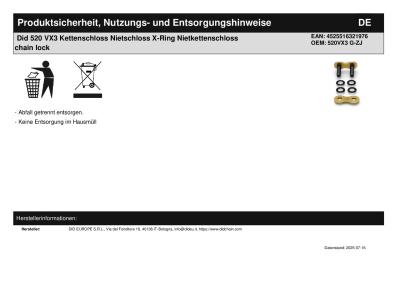 Titel: | Did 520 VX3 Kettenschloss Nietschloss X-Ring Nietkettenschloss chain lock |