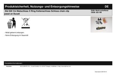 Titel: | Did 520 Vm Nietschloss X Ring Kettenschloss Schloss chain clip passt an Ducati |