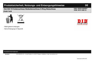 Titel: | Did 530 VX Kettenschloss Nietkettenschloss X-Ring Nietschloss chain lock |