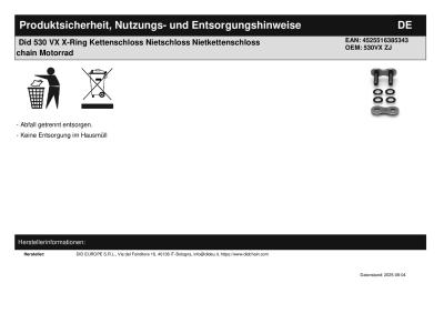 Titel: | Did 530 VX X-Ring Kettenschloss Nietschloss Nietkettenschloss chain Motorrad |