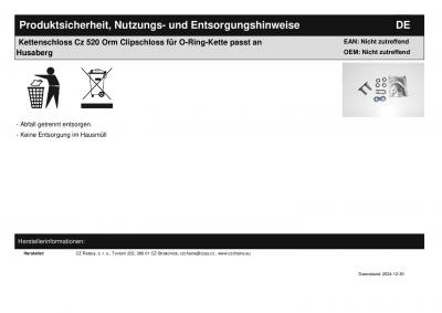 Titel: | Kettenschloss Cz 520 Orm Clipschloss für O-Ring-Kette passt an Husaberg |