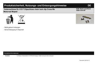 Titel: | Kettenschloss Dc 415 F Clipschloss chain lock clip Cross Mx Motorrad Moped |