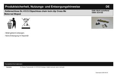 Titel: | Kettenschloss Dc 415 S Clipschloss chain lock clip Cross Mx Motorrad Moped |
