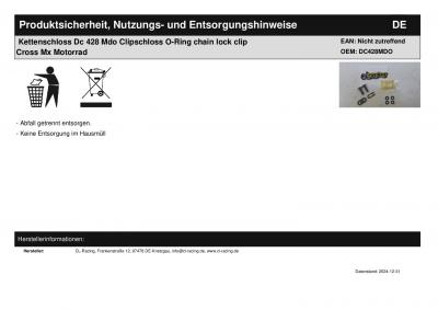 Titel: | Kettenschloss Dc 428 Mdo Clipschloss O-Ring chain lock clip Cross Mx Motorrad |