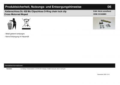 Kettenschloss Dc 428 Mo Clipschloss O-Ring chain lock clip Cross Motorrad Moped