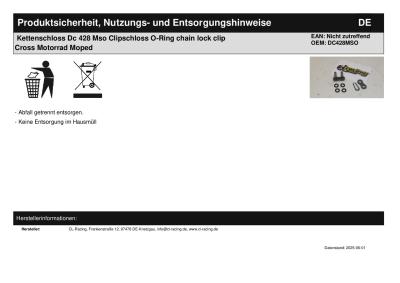 Kettenschloss Dc 428 Mso Clipschloss O-Ring chain lock clip Cross Motorrad Moped