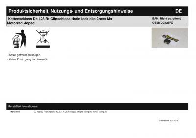 Titel: | Kettenschloss Dc 428 Rx Clipschloss chain lock clip Cross Mx Motorrad Moped |