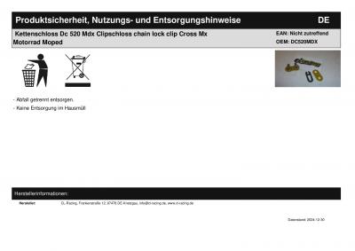 Titel: | Kettenschloss Dc 520 Mdx Clipschloss chain lock clip Cross Mx Motorrad Moped |