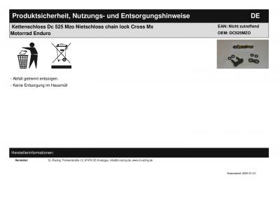 Titel: | Kettenschloss Dc 525 Mzo Nietschloss chain lock Cross Mx Motorrad Enduro |