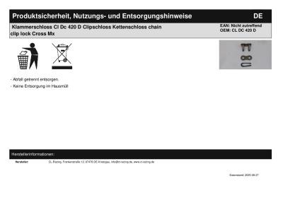 Titel: | Klammerschloss Cl Dc 420 D Clipschloss Kettenschloss chain clip lock Cross Mx |