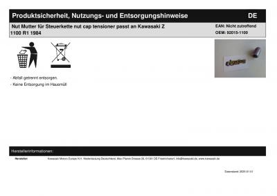 Titel: | Nut Mutter für Steuerkette nut cap tensioner passt an Kawasaki Z 1100 R1 1984 |