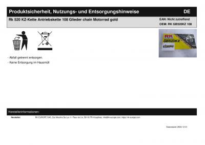 Titel: | Rk 520 KZ-Kette Antriebskette 108 Glieder chain Motorrad gold |