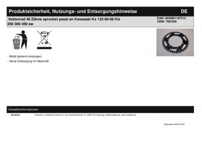 Titel: | Kettenrad 48 Zähne sprocket passt an Kawasaki Kx 125 80-08 Klx 250 300 450 sw |