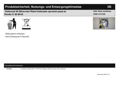 Titel: | Kettenrad 49 Zähne kein Ritzel Kettensatz sprocket passt an Honda Cr 80 86-02 |