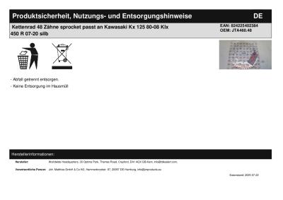| Titel: | Kettenrad 48 Zähne sprocket passt an Kawasaki Kx 125 80-08 Klx 450 R 07-20 silb |