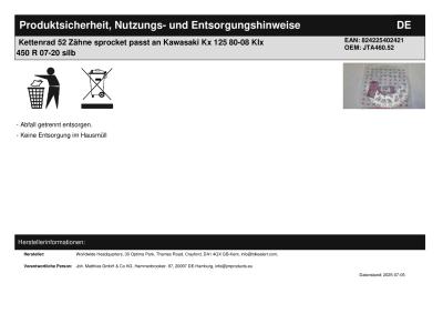 Titel: | Kettenrad 52 Zähne sprocket passt an Kawasaki Kx 125 80-08 Klx 450 R 07-20 silb |