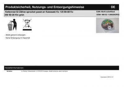 Titel: | Kettenrad 52 Zähne sprocket passt an Kawasaki Kx 125 80-08 Kx 250 92-20 Klx grün |