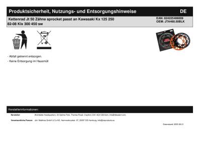 Titel: | Kettenrad Jt 50 Zähne sprocket passt an Kawasaki Kx 125 250 82-08 Klx 300 450 sw |