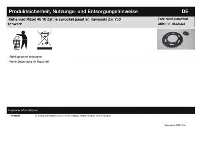 Titel: | Kettenrad Ritzel 46 16 Zähne sprocket passt an Kawasaki Zxr 750 schwarz |