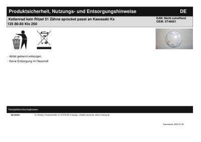 Titel: | Kettenrad kein Ritzel 51 Zähne sprocket passt an Kawasaki Kx 125 80-83 Klx 250 |