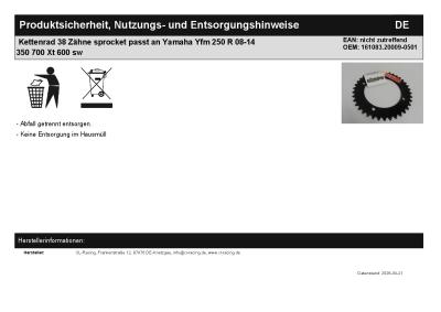 | Titel: | Kettenrad 38 Zähne sprocket passt an Yamaha Yfm 250 R 08-14 350 700 Xt 600 sw |