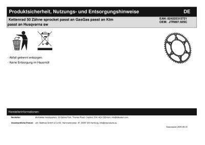 | Titel: | Kettenrad 50 Zähne sprocket passt an GasGas passt an Ktm passt an Husqvarna sw |