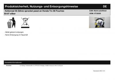 | Titel: | Kettenrad 50 Zähne sprocket passt an Honda Trx 90 Fourtrax 93-07 silber |