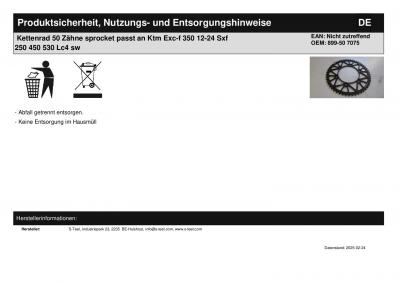 | Titel: | Kettenrad 50 Zähne sprocket passt an Ktm Exc-f 350 12-24 Sxf 250 450 530 Lc4 sw |