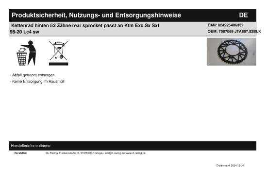 | Titel: | Kettenrad 52 Zähne rear sprocket passt an Ktm Exc Sx Sxf 98-20 Lc4 bl |