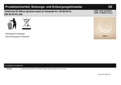 | Titel: | Kettenrad 52 Zähne sprocket passt an Kawasaki Kx 125 80-08 Kx 250 82-20 Klx silb |