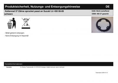 Titel: | Kettenrad 37 Zähne sprocket passt an Suzuki Ltr 450 06-09 schwarz |