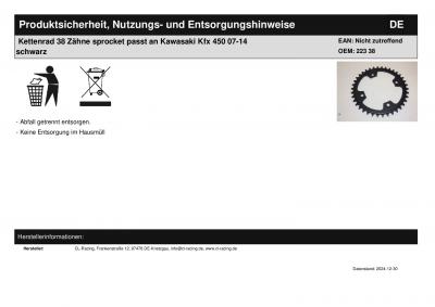 Titel: | Kettenrad 38 Zähne sprocket passt an Kawasaki Kfx 450 07-14 schwarz |
