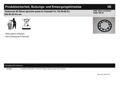 Titel: | Kettenrad 48 Zähne sprocket passt an Kawaski Kx 125 80-08 Kx 250 82-20 Klx sw |