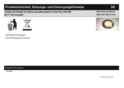 Titel: | Kettenrad Stealth 42 Zähne sprocket passt an Ktm Exc 250 300 93-17 Sxf sw-gold |