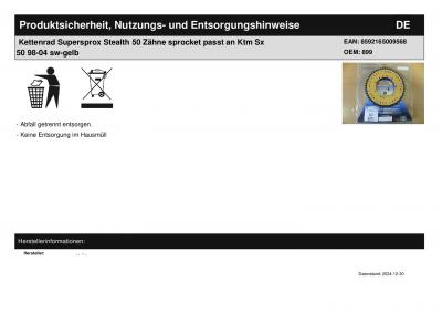 Titel: | Kettenrad Supersprox Stealth 50 Zähne sprocket passt an Ktm Sx 50 98-04 sw-gelb |