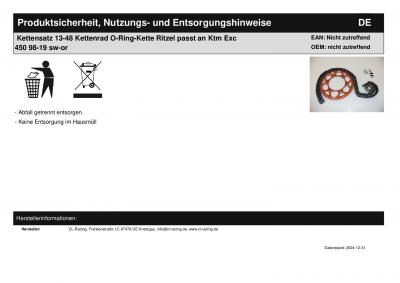Titel: | Kettensatz 13-48 Kettenrad O-Ring-Kette Ritzel passt an Ktm Exc 450 98-19 sw-or |