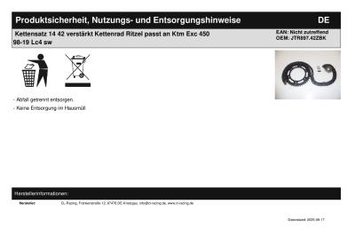 Titel: | Kettensatz 14 42 verstärkt Kettenrad Ritzel passt an Ktm Exc 450 98-19 Lc4 sw |