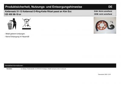 Titel: | Kettensatz 51-13 Kettenrad O-Ring-Kette Ritzel passt an Ktm Exc 125 450 98-19 or |
