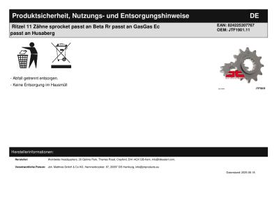 | Titel: | Ritzel 11 Zähne sprocket passt an Beta Rr passt an GasGas Ec passt an Husaberg |